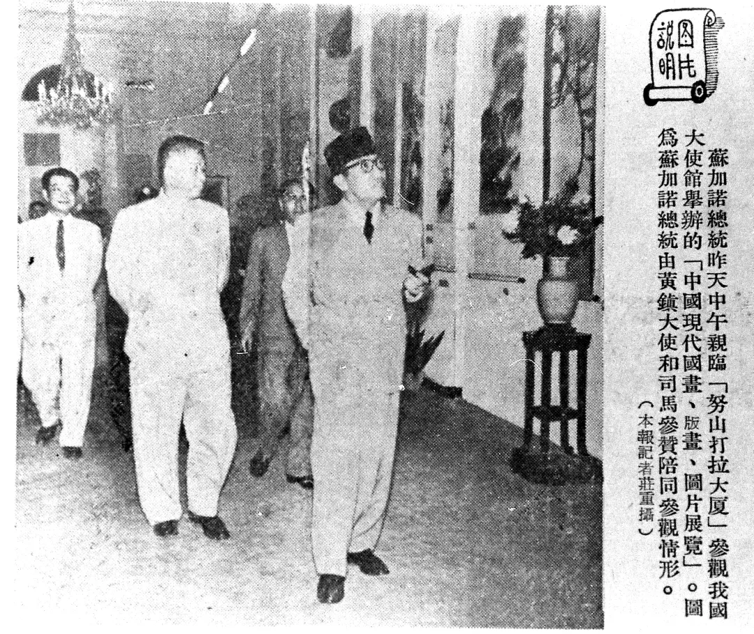 黃鎮大使、司馬文森陪同蘇加諾參觀畫展