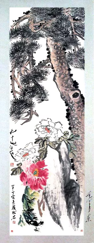 齊白石因體力不支未完成該畫,由陳半丁(中國畫院副院長)合作完成,齊白石的落款“九十七白石”,名下鈐朱文篆書“借山翁”方印,他在完成這幅畫後不久去世。據説毛主席簽名的畫十分稀少,除在人大會堂的《江山如此多嬌》畫,當推此畫。