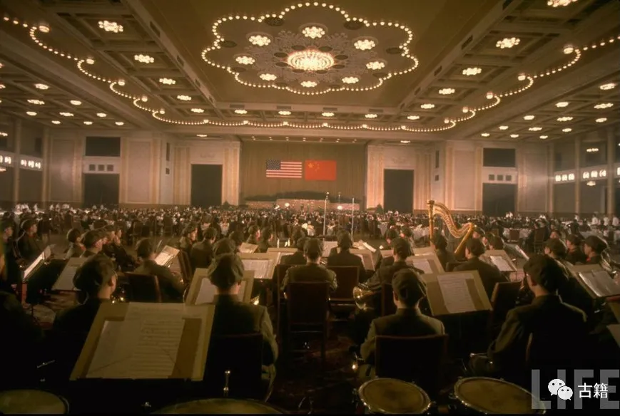 就在毛澤東會晤尼克松的當天晚上,2月21日,周恩來總理舉行盛大宴會歡迎尼克松總統一行。中國軍樂團演奏了尼克松總統喜愛的《美麗的亞美利加》和牧場之家等美國歌曲,優美的旋律在人民大會堂大廳裏久久迴盪。尼克松聽到演奏《美麗的亞美利加》時非常高興。因為這是他最喜歡並指定在他就任總統的典禮上演奏的樂曲。