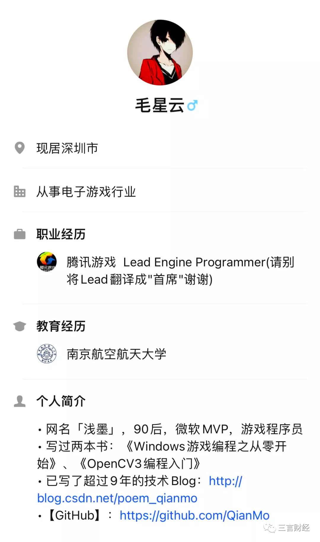 此前,毛星雲在接受採訪時,曾表示自己從小喜歡玩遊戲,後來大學裏開始自己嘗試做遊戲、寫程序,便一發不可收拾了。