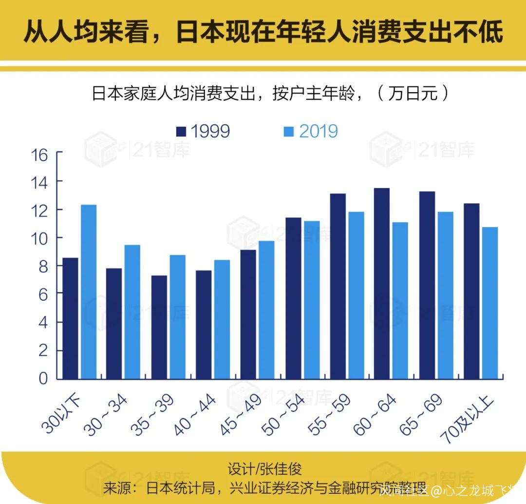 從數據上來看,日本年輕人的消費支出其實是在不斷增長的。據日本統計局,日本30歲以下的年輕人人均消費支出在近30年出現大幅上升,至2019年在所有年齡段中處於最高水平。