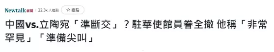 更有台灣輿論認為,這一舉動“非常罕見”,並將之解讀為“準斷交”狀態,甚至幻想立陶宛將成為“台灣外交絕地大反攻的起點”……