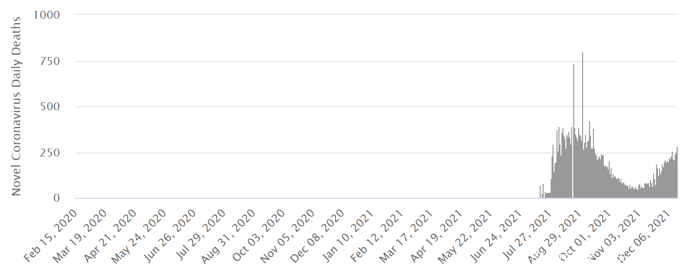 越南單日新增死亡病例(2020.02.15-2021.12.15**)**