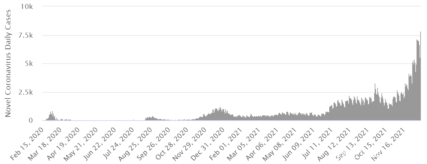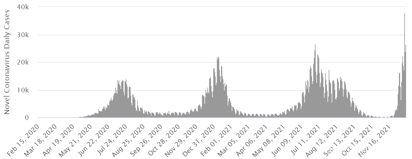 南非單日新增確診病例(2020.02.15-2021.12.15**)**