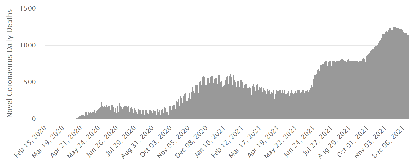 俄羅斯單日新增死亡病例(2020.02.15-2021.12.15)