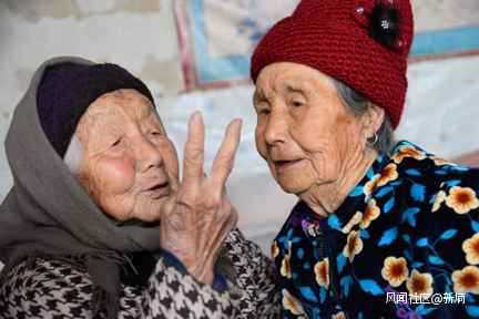 老人家耳背,相互貼着耳朵説話,邊摩挲着對方的背,邊抹着眼淚。
