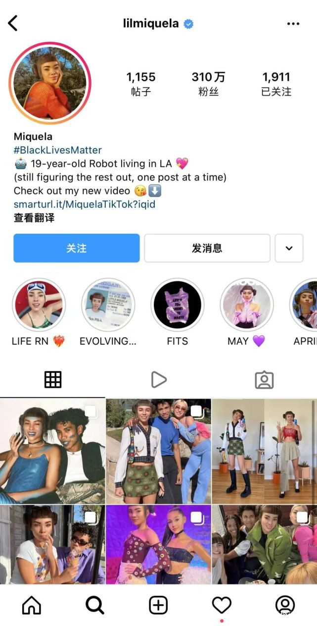 “養成”一個虛擬偶像並非容易,依靠的是持續不斷的文化輸出和個性一致。國外虛擬偶像Lil Miquela在社交網站上十分出眾,會分享自己的穿搭、美食、社交,表情動作多變,像年輕人一樣。