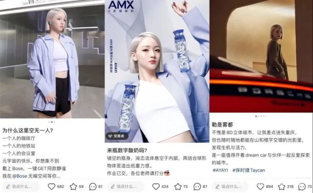 今年5月,虛擬數字人AYAYI 在小紅書亮相,首發帖的點贊量目前已經超過了11萬。