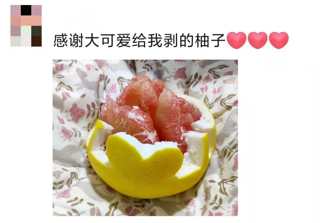 尤其是那些還在校園裏的小情侶們,一到柚子的季節,給對方送剝好的柚子就變成了非常有儀式感的一件事。