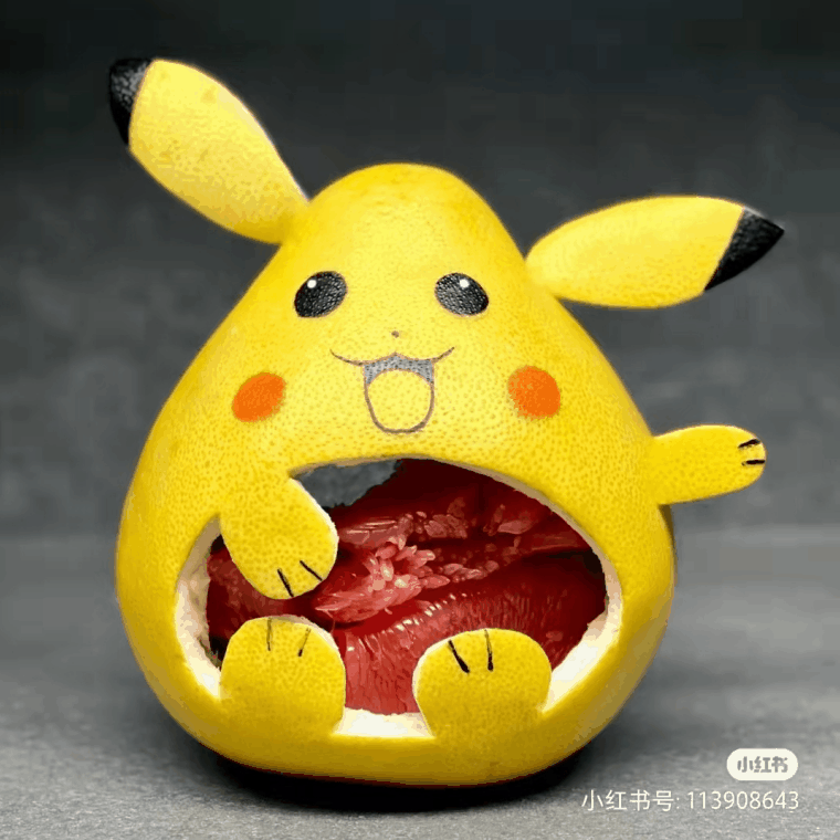 但一個光禿禿的柚子皮怎麼能顯示出心思呢?於是就有了皮卡丘龍貓小熊維尼……