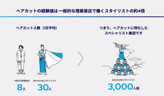 據統計,普通理髮店,一個理髮師一天要服務8個客人,但在QB House,一個理髮師每天要服務30位客人!