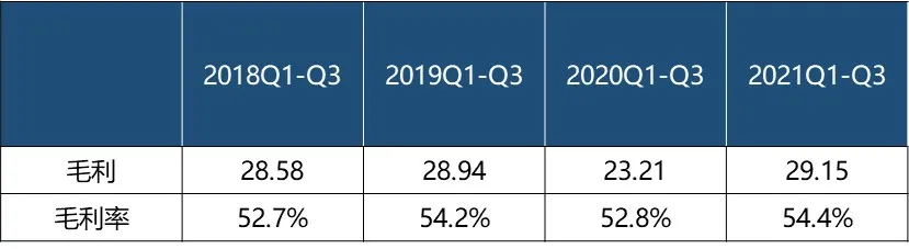 2021Q1-Q3,百威亞太毛利率水平再次處於可比同業的第一。