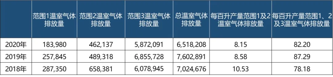 在第三方的獨立審核下,百威亞太明確了不同温室氣體範圍以及各運營類別的碳排放量。