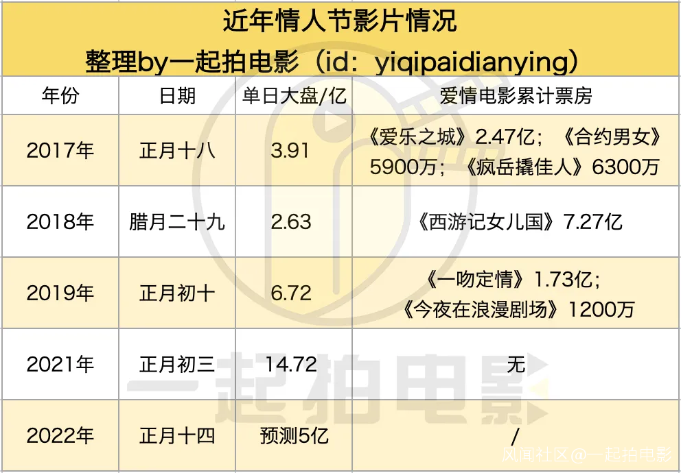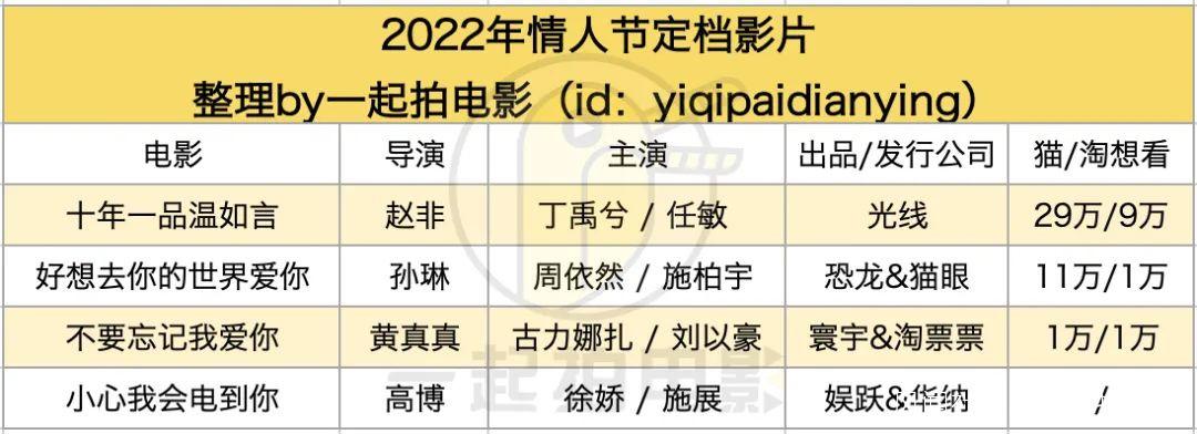 而2022年2月14日,這個2(愛)最多的情人節,目前也匯聚了近年來最多的愛情電影扎堆。