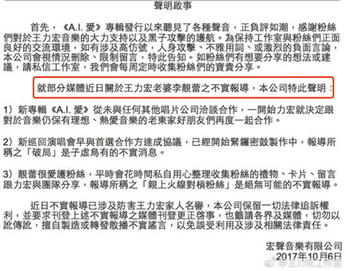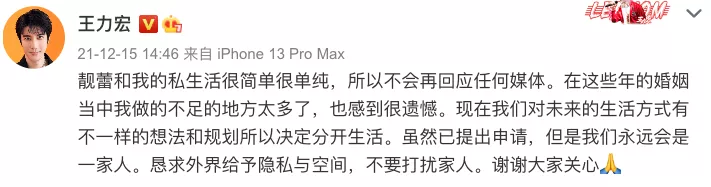一大早,就有灣灣媒體爆,王力宏和李靚蕾離婚了。