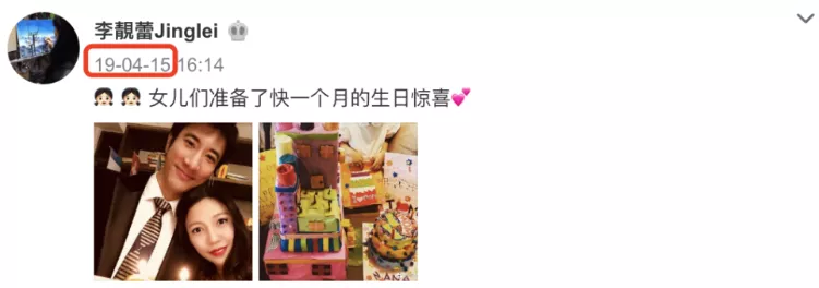 而李靚蕾這邊,2019年生日,發了張兩人合影。