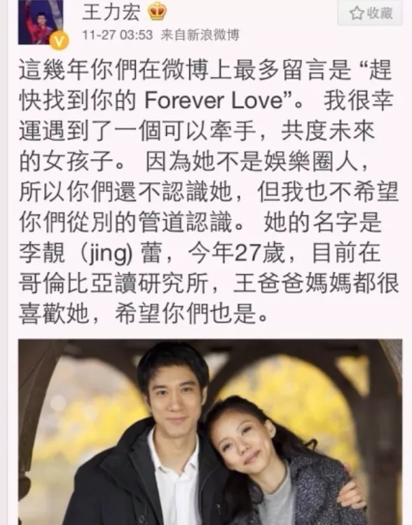 再回看下,2013年他倆結婚時,王力宏就非常重視家人的意見,最後一句特別強調,爸爸媽媽很喜歡這個兒媳婦。