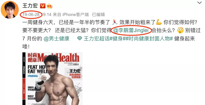 到2019年6月,王力宏發了條廣告之後,就再也沒有@過老婆。