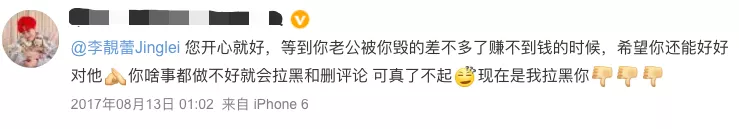 李靚蕾看到這些留言後,一氣之下把很多評論都給刪了。