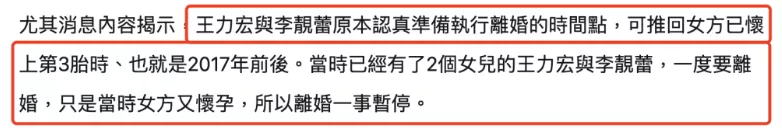 只是李靚蕾後來又懷了第三胎,離婚的事情才擱置。