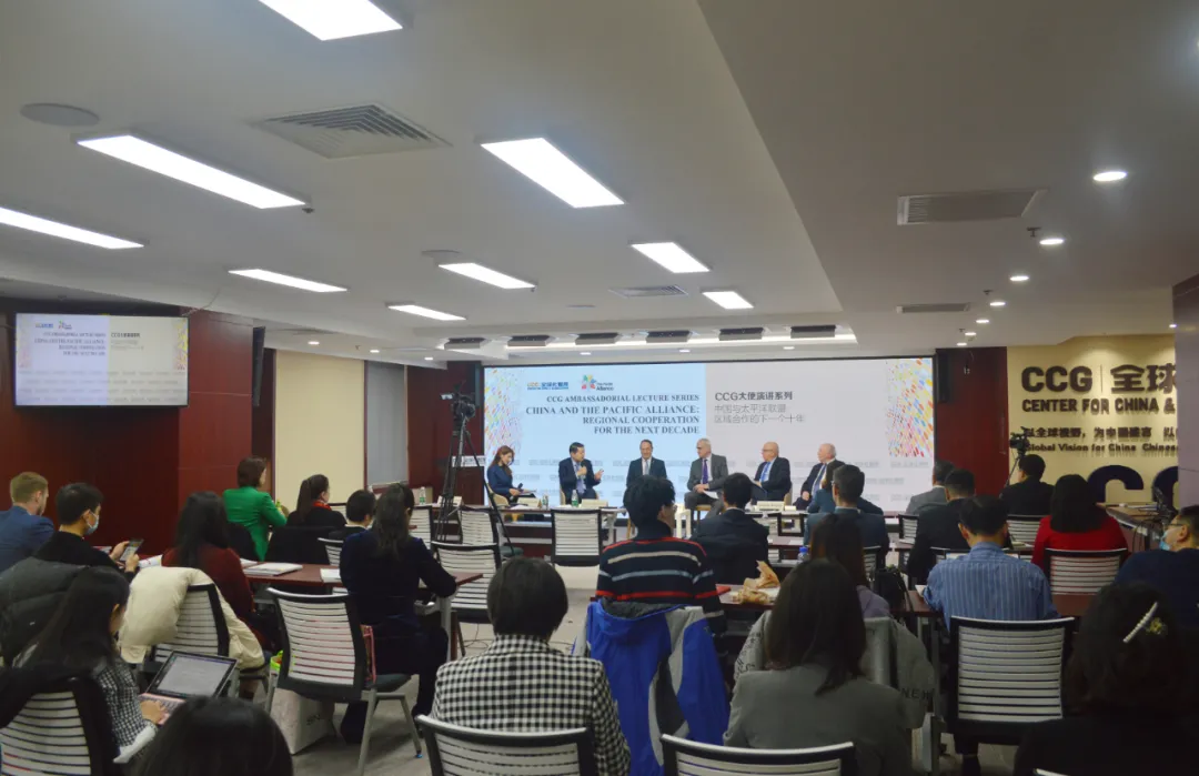 2021年12月13日,全球化智庫(CCG)在北京總部舉辦CCG大使講座系列之”中國與太平洋聯盟:區域合作的下一個十年“。哥倫比亞駐華大使H.E. Luis Diego Monsalve,墨西哥駐華大使H.E. Jesus Seade,秘魯駐華大使H.E. Luis Quesada,智利駐華大使H.E. Luis Schmidt和CCG理事長王輝耀共同就中國與太平洋聯盟的區域合作發表了致辭。隨後,與會各方就CPTPP等多邊貿易協定,”一帶一路”的未來發展,太平洋聯盟2030年戰略遠景等共同進行了圓桌討論,由CCG研究員明竺主持。