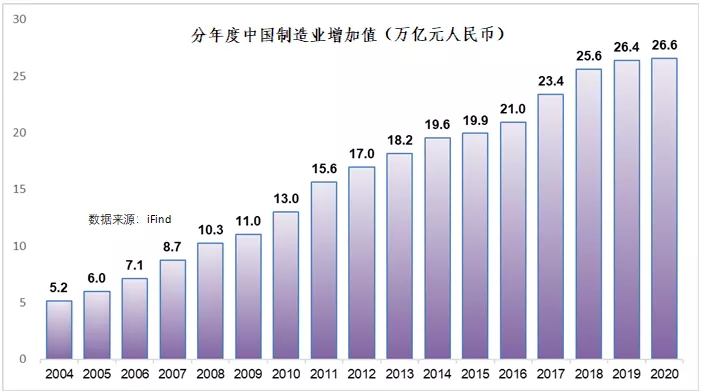 **雖然產值佔比極低,但在製造業增加值中,大約有三分之一的最終產出,是由機牀加工完成的。**也就是説,2020年中國26.6萬億的製造業增加值中,機牀行業直接撐起了8-10萬億的產出。