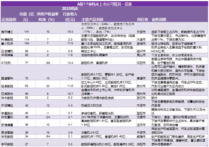 這是A股17家機牀上市公司的情況。機牀收入最高的秦川機牀、海天精工,收入都沒有超過20億。