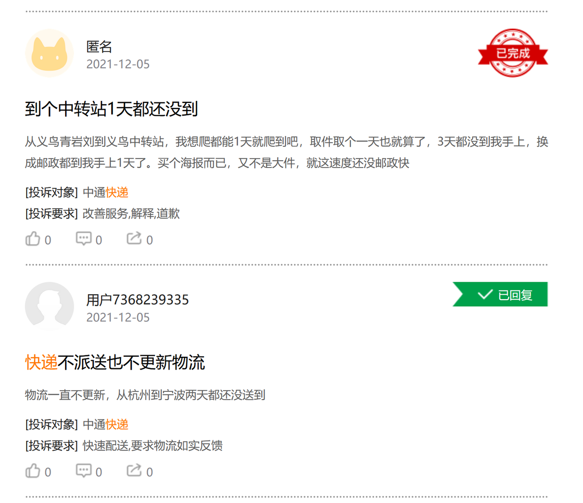 物流行業本質上還是屬於服務行業,服務質量評價不取決於服務方而是取決於被服務方。國內快遞玩家自開始價格戰以來,對於服務質量的重視程度顯然有所下降。松果財經從黑貓投訴瞭解到,有關“快遞”的相關投訴近40萬條,其中查不到物流、物流過慢、快遞丟失等較為常見。