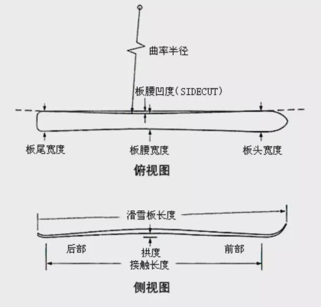 滑雪板示意圖(來源:科技之光)雪的表面也許是地球上最神奇的表面之一,固態、液態、氣態的水在這裏同時並存相互作用,形成複雜的物理特性。滑雪運動可以看成人-板系統重心轉動和曲線運動的合成。高山滑雪是重力勢能轉化為動能的直接演示,體重大的運動員單位體重受到的空氣阻力更小,因此會滑得更快。大、小回轉時不僅靠手中的雪杖像船篙一般改變行進方向,更要靠身體傾斜讓滑雪板底面和雪面形成一個夾角。高速滑行的邊刃“刻”入雪地後,“側面切削”的橫向摩擦力和滑雪板邊緣相垂直,提供了人體曲線運動的向心力。新型的滑雪板頭尾較寬,腰部較細,形如“沙漏”,施力後會形成一定弧度“引導”轉彎。滑雪板越短,“板腰”越窄,轉動半徑就越小,沒有彎曲變形的滑雪板是無法轉彎的。
