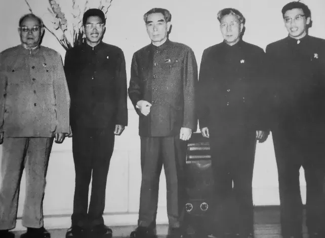1971年3月,周總理、葉劍英(左一)訪問越南時與王幼平(右二)合影