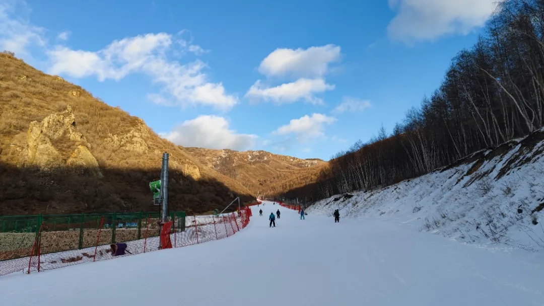 儘管新疆出身的朋友看着狹窄的雪道和遠處光禿禿的山脈表示“就這”,但對於一個連鵝毛大雪都沒見過的南方人而言,這裏已經算得上是冰雪天堂。