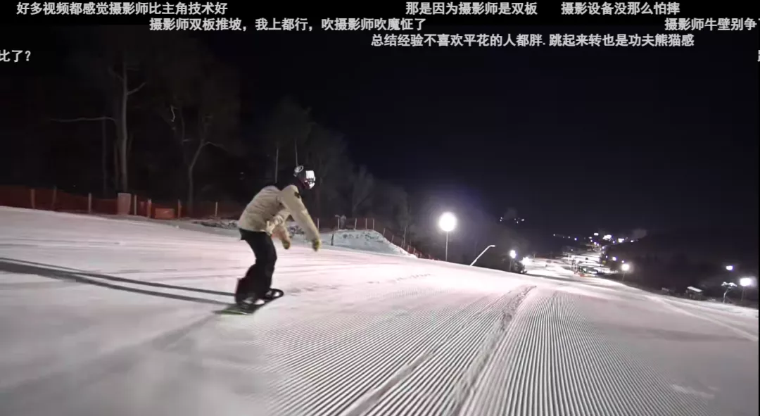 我從一些教學視頻中掌握了滑雪的基礎知識,也通過一些滑雪大片直觀感受到了這項運動的極限之處。但最讓我收穫頗豐的還得數B站彈幕——我發現,但凡是個觀看量多些的滑雪視頻,彈幕就會開始爭論“跟拍的攝像師到底牛不牛逼”。