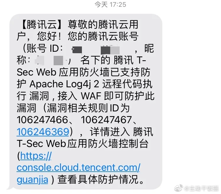 有博主還收到了騰訊雲發來的防護短信。 ▼