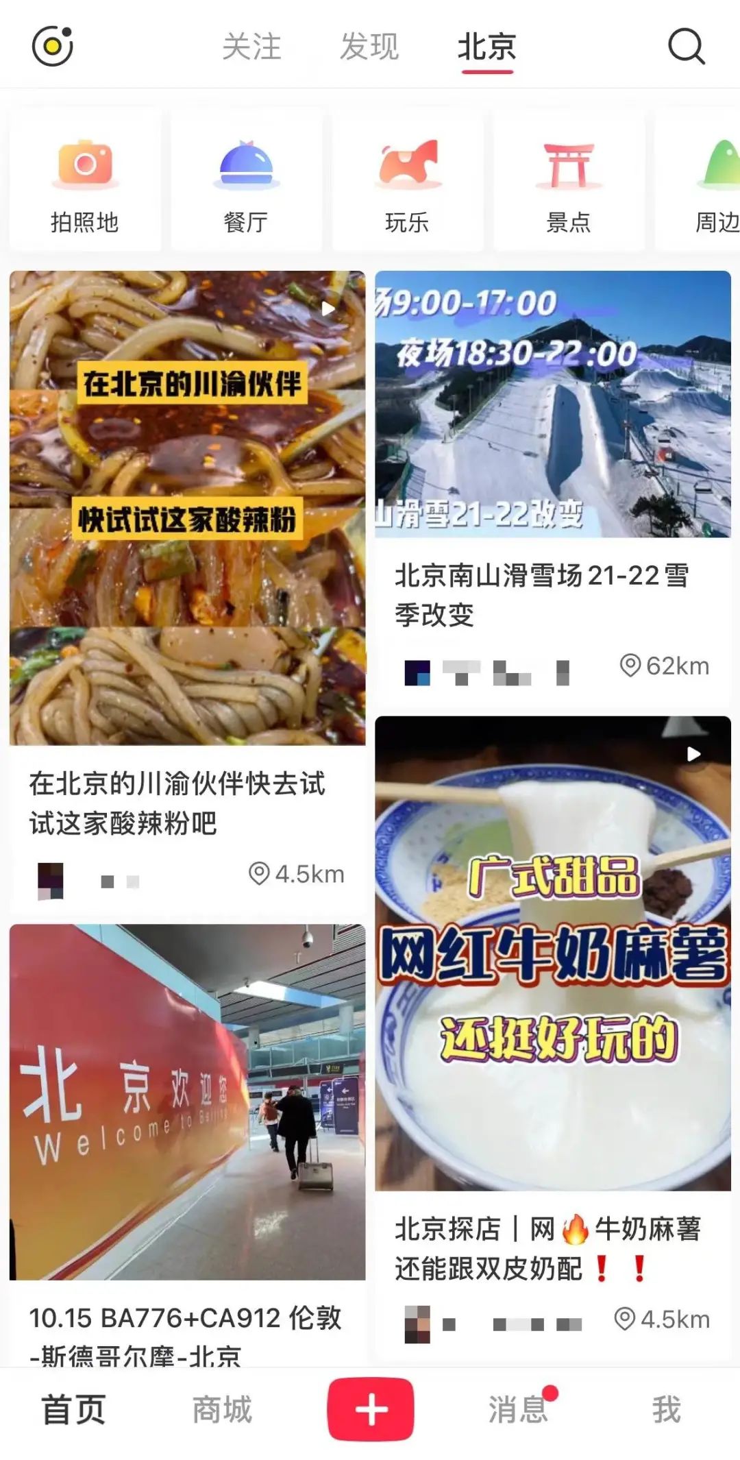 小紅書和大眾點評搶生意的火藥味更重。這邊,小紅書“同城”頻道,對餐廳、玩樂、景點、周邊遊等進行了分類,點擊即可搜索各類餐廳及景點。另一邊,大眾點評上線“達人探店”版塊,推薦語、圖片濾鏡甚至達人的自拍姿勢,都與小紅書如出一轍。