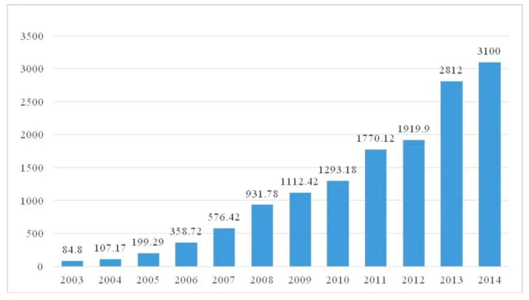 圖1:中國石油鑽採設備銷售收入(億元),2003-2014