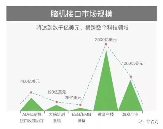 根據第三方研究機構的測算,單純從腦機接口設備(EEG/EMG)的維度來看,市場規模在5年內將達到25億美元。如果從腦機接口將深度影響的數個科技領域來看,市場規模在5年內將達到數千億美元,其中包括:ADHD腦機接口反饋治療 460億美元,大腦檢測系統 120億美元,教育科技 2500億美元,遊戲產業 1200億美元。
