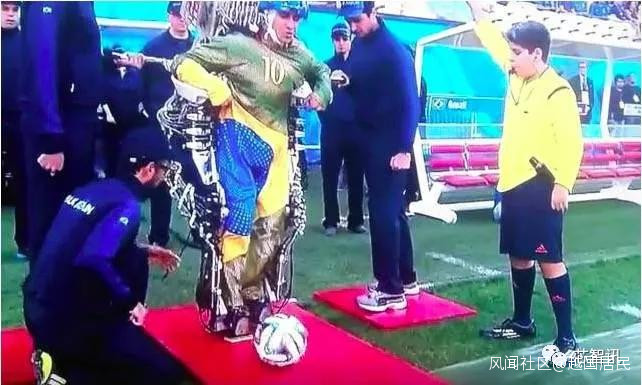 2012年巴西世界盃——機器戰甲,身着機器戰甲的截肢殘疾者,憑藉腦機接口和機械外骨骼開出了一球。