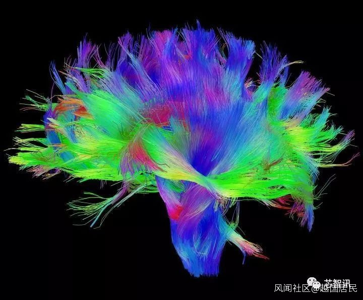 ▲人類連接組計劃(Human Connectome Project)成果:大腦中功能接近的軸突所以形成的「綵帶」圖案,它們通常位於白質之中。