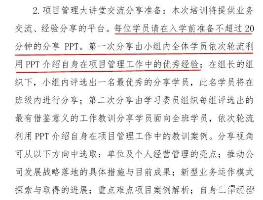 首先是在參加培訓班的通知裏要求根據自己的工作編制分享經驗課件,大家在培訓課件間或早課前進行經驗分享,使大家獲得許多管理中的經驗教訓。
