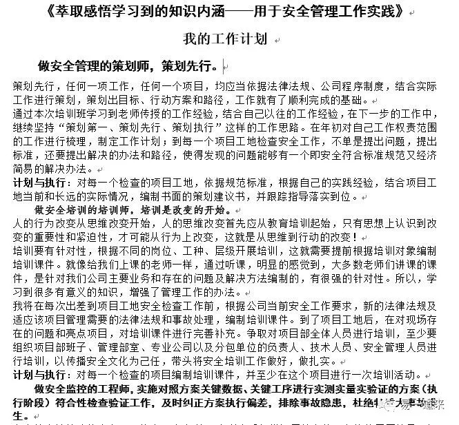 大家想一想,如果這樣的培訓班是一個連續循環的培訓,就如註冊安全工程師繼續教育,等到下一次的繼續教育培訓時,將自己上一次做的工作策劃落實情況的經驗教訓進行分享,獲得老師和同學們的“評頭論足”的評價,是不是大家都會獲得更多的教益。