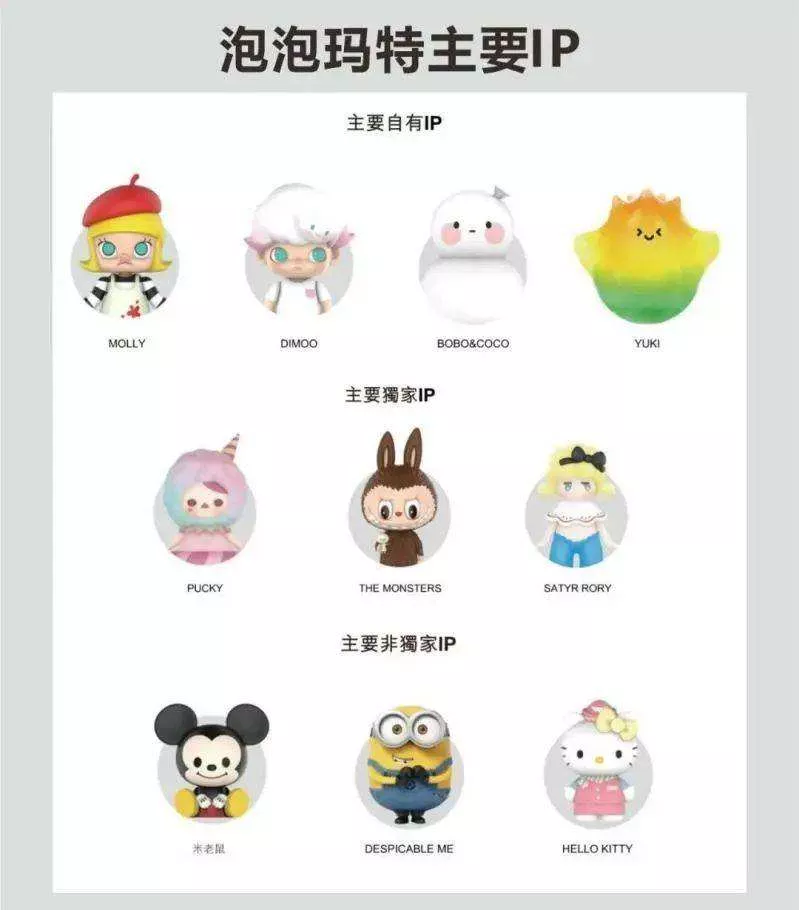 1.自有IP中,仍然長期依賴Molly、Dimoo、SP,這三大頭部IP。