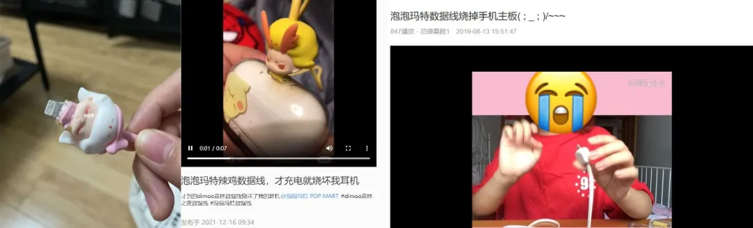 △泡泡瑪特數據線爆炸自燃、數據線燒壞耳機、數據線燒壞主板