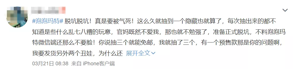 你可以看到周圍不玩泡泡瑪特的朋友,很難因為最近出了哪個新款,就突然沉迷狂買,而玩了幾年泡泡瑪特的老玩家卻抱怨不斷。
