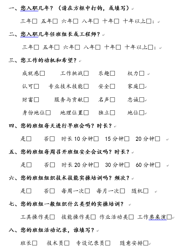 **☞**設計了入職幾年,入職多長時間成為班長這樣的問題,我想得到的答案是在工程類央企需要多少年能夠修煉成為一名合格的班長。