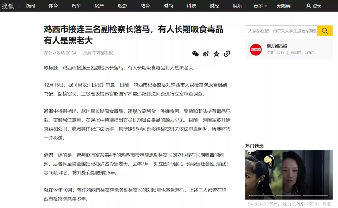 雞西市檢察院兩名原副檢察長竟然是長期吸毒者、黑老大_風聞