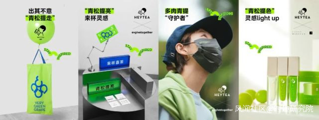 綠色可以算的上是“老網紅色”了。此次喜茶推出「多肉青提色」,也是藉由本身產品的色號,進而植入產品特色和品牌理念。