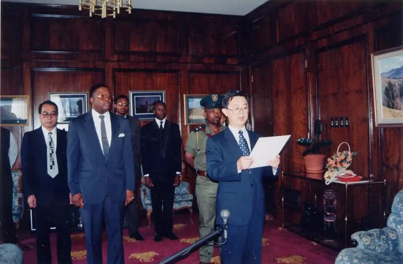 由於中國和萊索托關係十分友好,萊方對我的到任十分重視。本打算很快就安排我遞交國書,但由於此時老首相莫赫勒病倒,而按萊方禮賓規定,新任大使在遞交國書當日下午必須去會見首相,鑑於首相因病不能見客,故我遞交國書的日期就只好相應推遲,等首相病情好轉後即行安排。哪知一直等到1998年2月上旬,老首相仍一病不起,而且病情日漸嚴重,萊索托政府只得決定由副首相莫西西利任代首相,主持政府工作。於是,萊索托外交部立即安排我於2月12日遞交國書,當天下午由代首相代表莫赫勒首相與我會見。