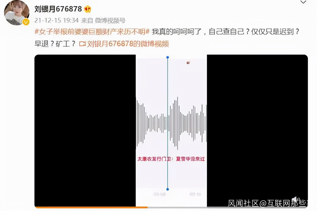 一個貌美如花的兒媳,因舉報前婆婆突然爆火網絡,該事件以“熱搜第一”的方式刷爆了朋友圈,據悉,這名兒媳名叫劉銀月,她通過視頻的方式,實名指控前婆婆夏雪華“吃空響、並擁有8套房產和9間商鋪等鉅額不明資產且對自己實施家暴等行為”,在涉事方回應“吃空響”不實後,劉銀月又再次放出了錄音視頻“打臉”,給吃瓜羣眾看得是雲裏霧裏,真相究竟是什麼?