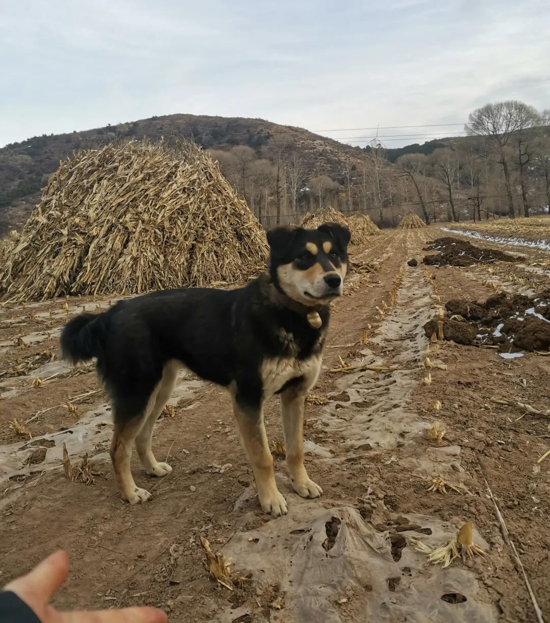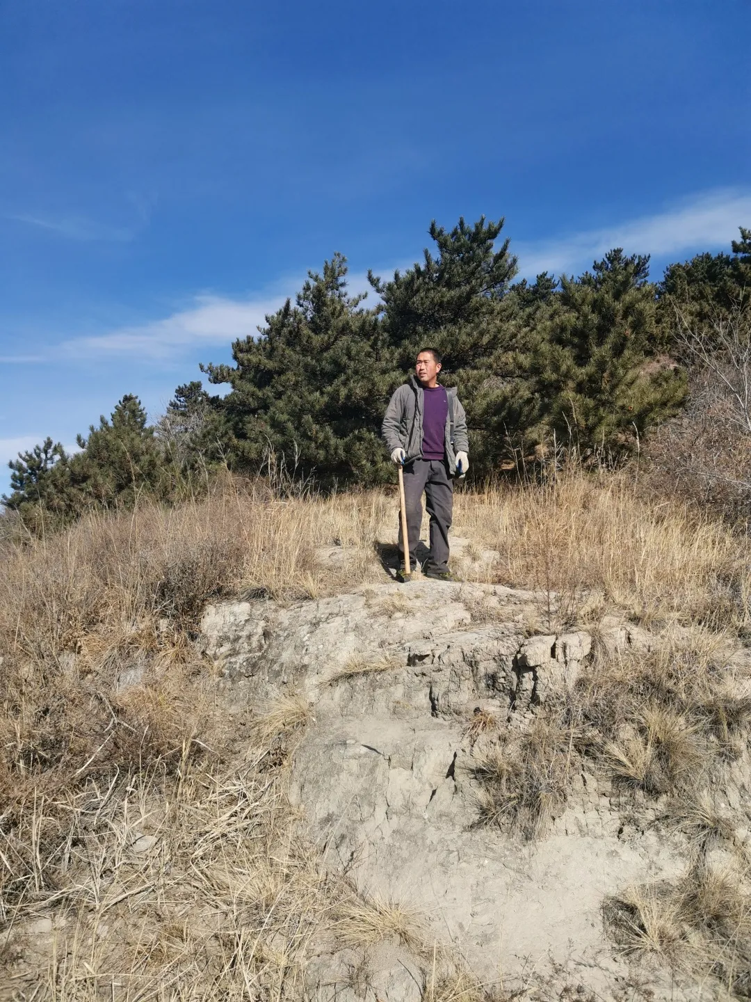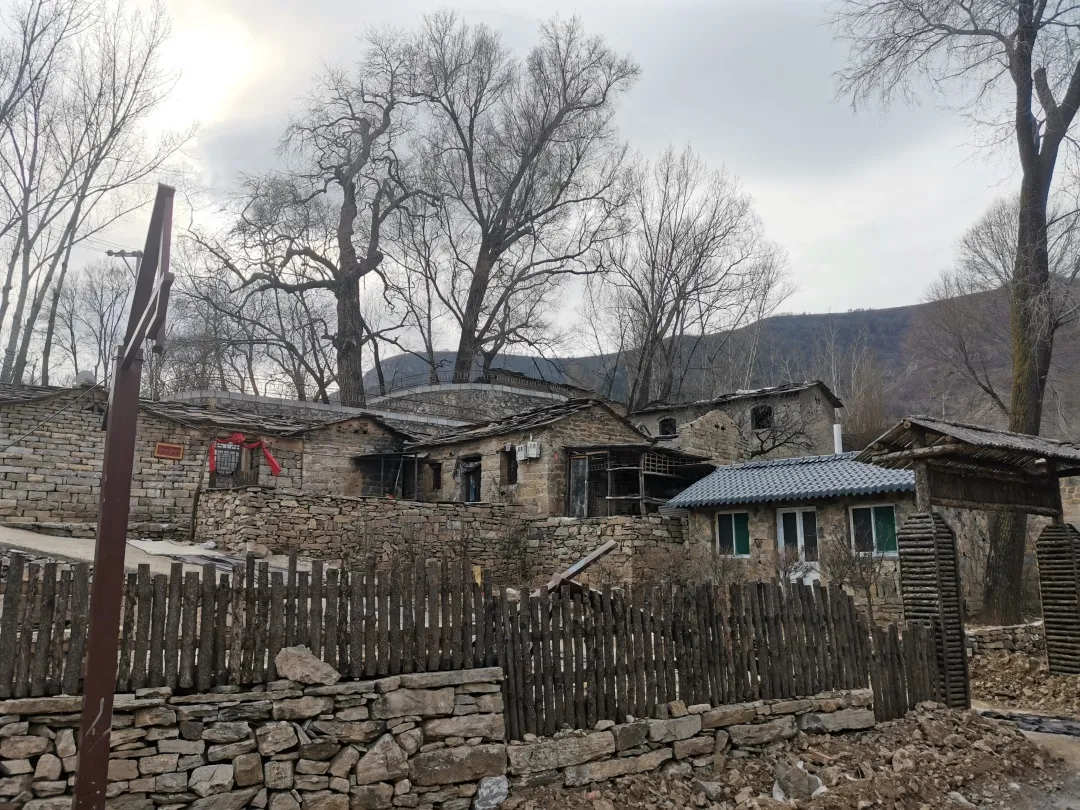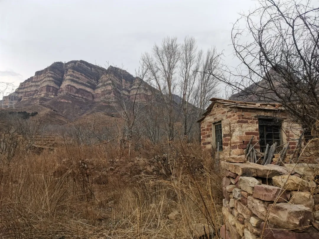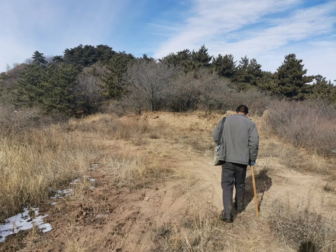 這個季節,山上一片枯黃,沒走多久黃土就爬上了鞋面和褲腿。沿着小路往下,太陽不容易照到的地方殘留着小片的積雪。