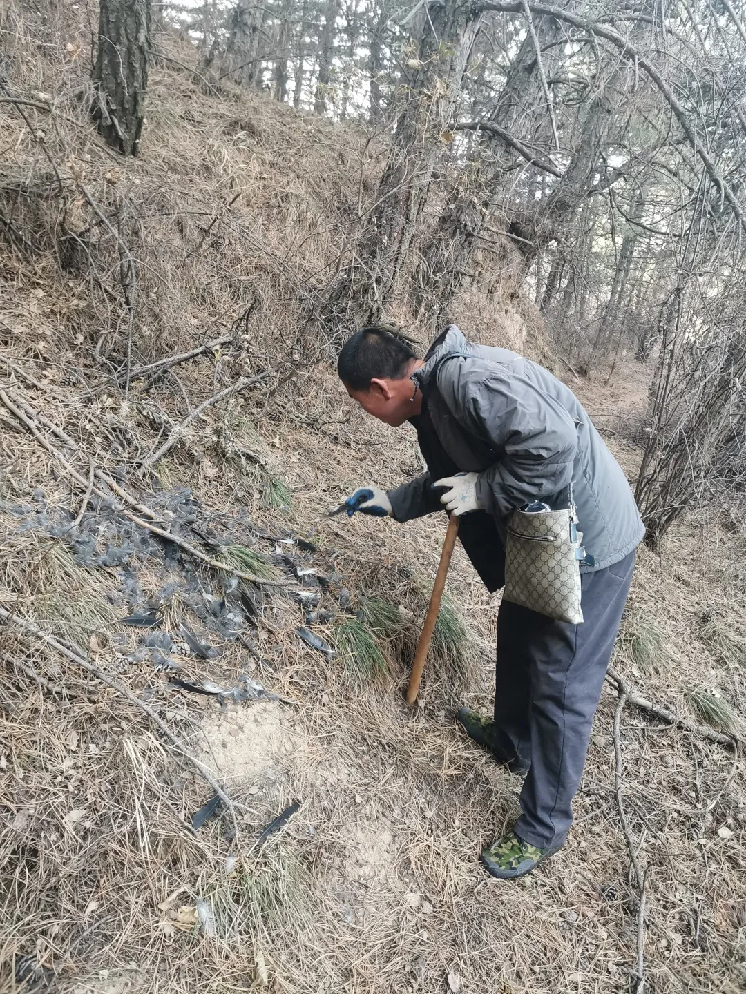 拆除了鐵絲,我們也差不多到了該返回的時間。跟着二寶,我就像是一個陌生的遊客,有一瞬間我突然覺得沒有比“老豹子”更貼切的稱呼了,熟悉自己的領地又時刻保持敏鋭,二寶走在這山裏的時候,和豹子是一樣的。